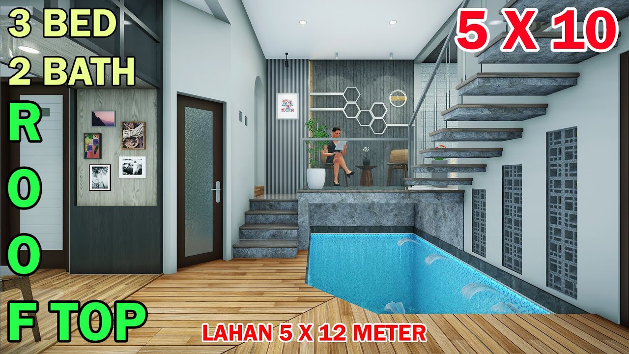 Split Level House 6x12 Meters 4 Bedroom 3 Bathroom Mushola Garden Pool Rooftop On 6x20 Meters Land Youtube